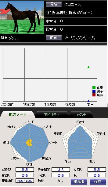 実績 1戦1勝 7月1週 2歳新馬 1.35.0(良) 1着