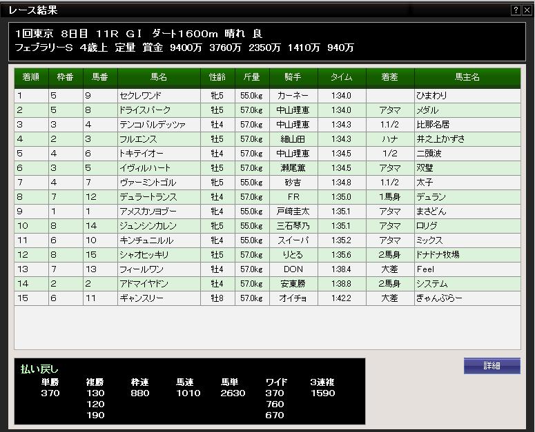 賞金~仮に1S1月1週から始めても1位になっていないと思うので、これは単に実力不足もある・・・が、自分が勝つ事であそこまで賞金が膨らむのは阻止できたようにも思うので何とも。ただし、不可能じゃないと思うので狙っていく。
