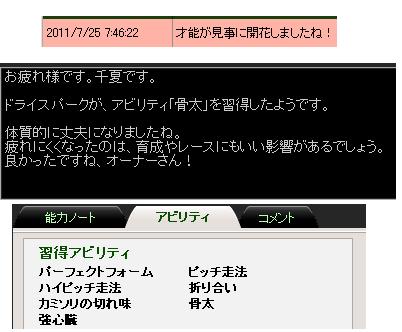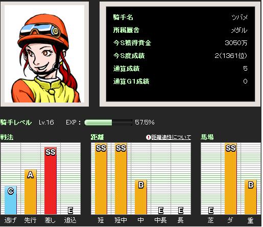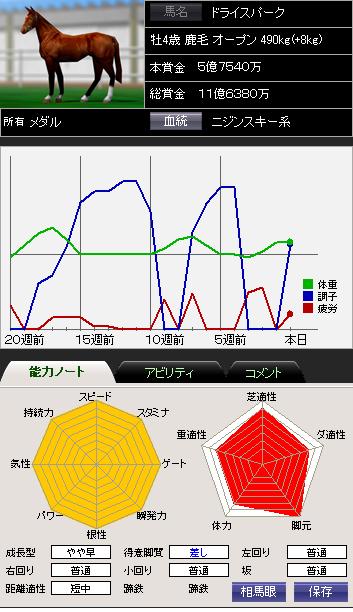 ★早熟組はどうしても3歳春以降苦しくなるので、オープンクラスまで勝ったら勝利を諦めて、レア個性への変化をPOするまで狙い続ける作戦もある。この場合、うまくいけば能力的に大きな上積みが期待でき、レア個性に変化すれば繁殖入り後の活躍も期待できる。