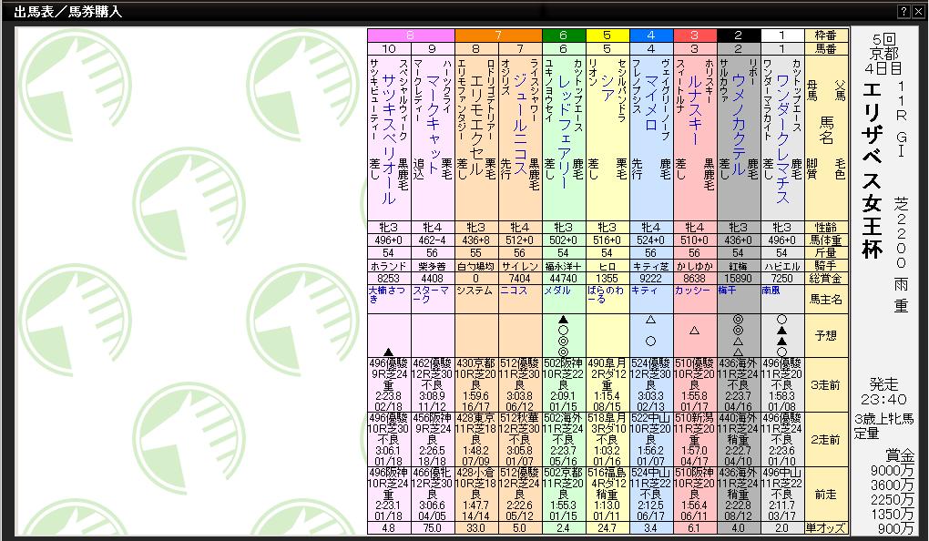昨日の秋華賞をレッドフェアリーが制し、皐月賞、オークス、秋華賞の変則3冠を達成しました!!・・・実はそれより嬉しいのが昨Sの桜花賞(ハッピボーナス)と合わせて牝馬3冠を制覇できた事だったりしますw