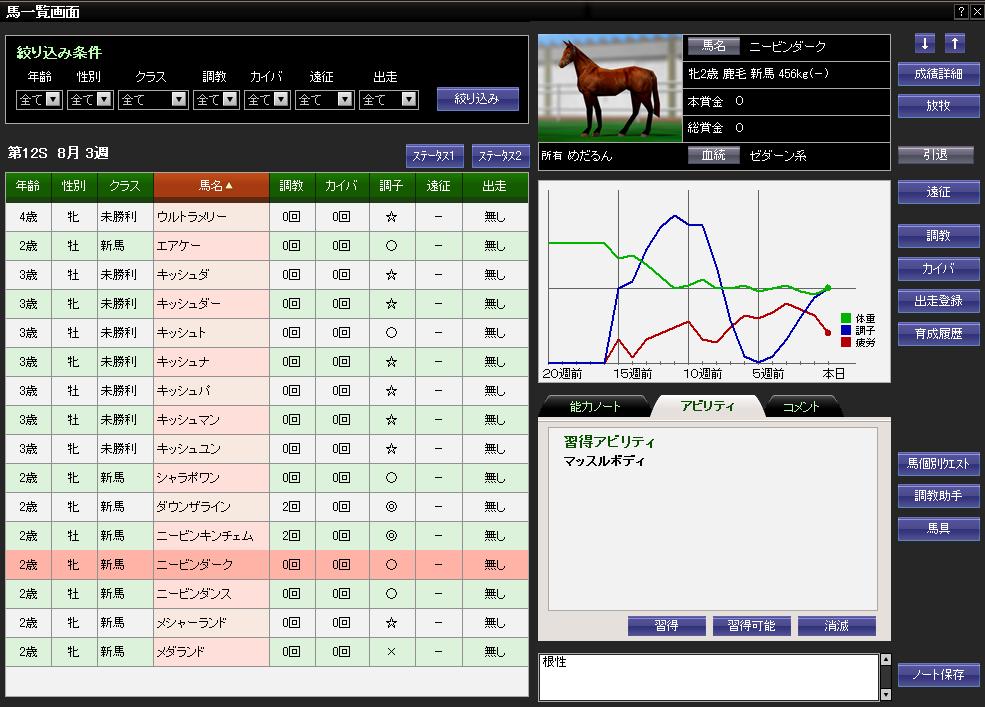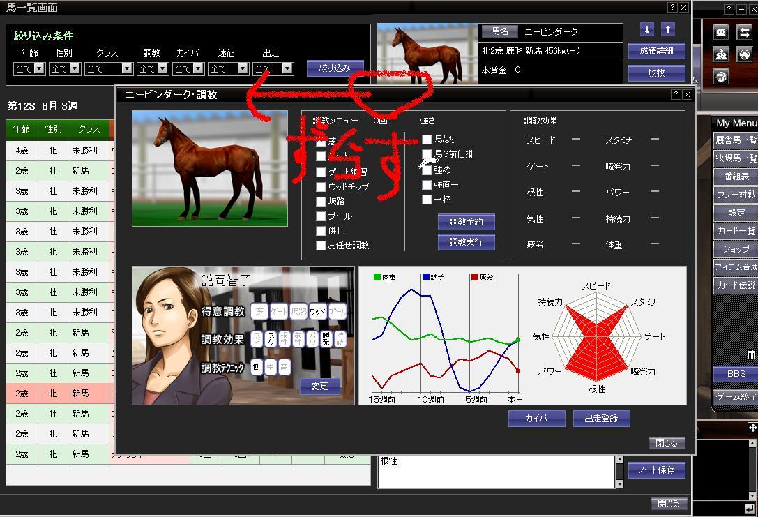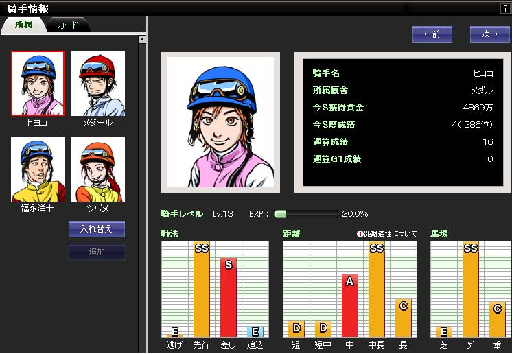 リアルの競馬で馬が騎手を育てるみたいな話があると思いますけど、そんなイメージでwwケルクリさんはまあまあいい馬だったのにヒヨコさんにかかればこんなもんです。もう八百長かってくらい勝てなかった・・・